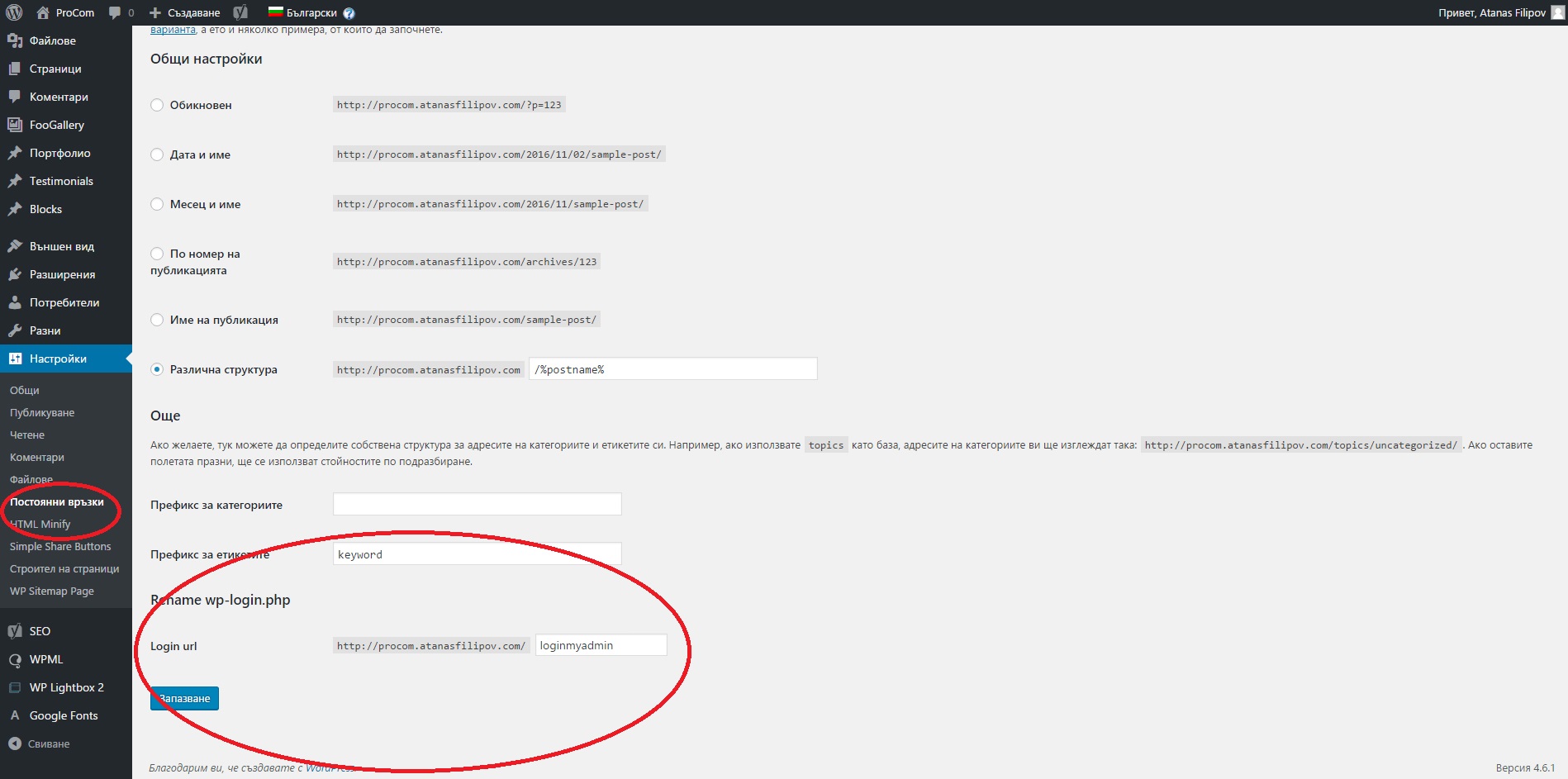 1. Инсталирайте следния модул: Rename wp-login.php, след това направете login варианта на вашия сайт.